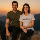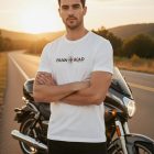 Camiseta de manga corta con costuras laterales. Cuello redondo en canalé 1×1 (4 capas). Cubrecosturas en cuello del mismo tejido.